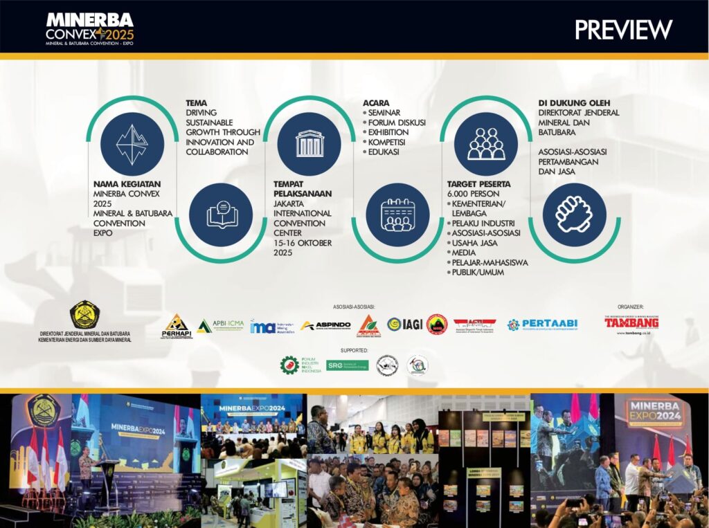 Minerba Convex 2025 hadir sebagai wahana strategis untuk mempertemukan pemerintah, pelaku industri, akademisi, investor, asosiasi, dan masyarakat luas dalam merumuskan langkah transformasi sektor pertambangan ke depan. Melalui pameran dan forum diskusi yang komprehensif, Minerba Convex 2025 menjadi pusat pertukaran informasi, inovasi, teknologi, dan peluang investasi di sektor pertambangan.